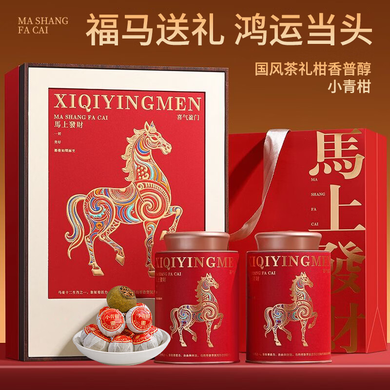 立香园年货送礼茶叶 小青柑普洱熟茶 老陈皮云南宫廷熟普小青桔柑普茶 马年爆款礼盒150克*2罐