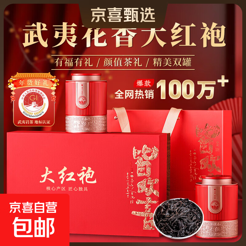 杰盈大红袍肉桂水仙新年茶叶大气送礼两盒装年货茶叶礼盒装 新年礼盒皆欢喜【大红袍】250g*1件