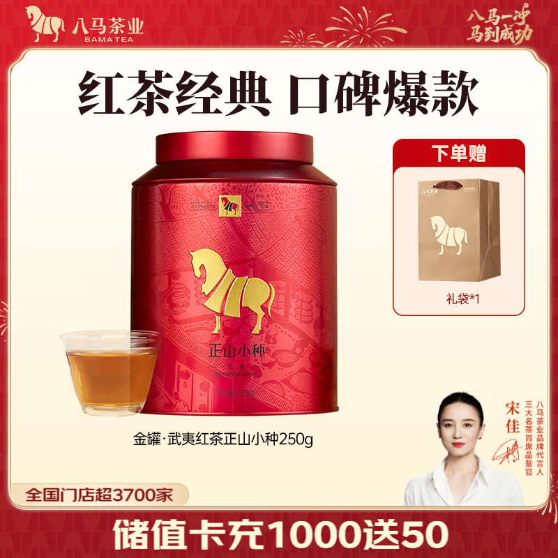 八马茶业 武夷山红茶 正山小种 茶叶自己喝 送礼 罐装 250g【赠礼袋*1】