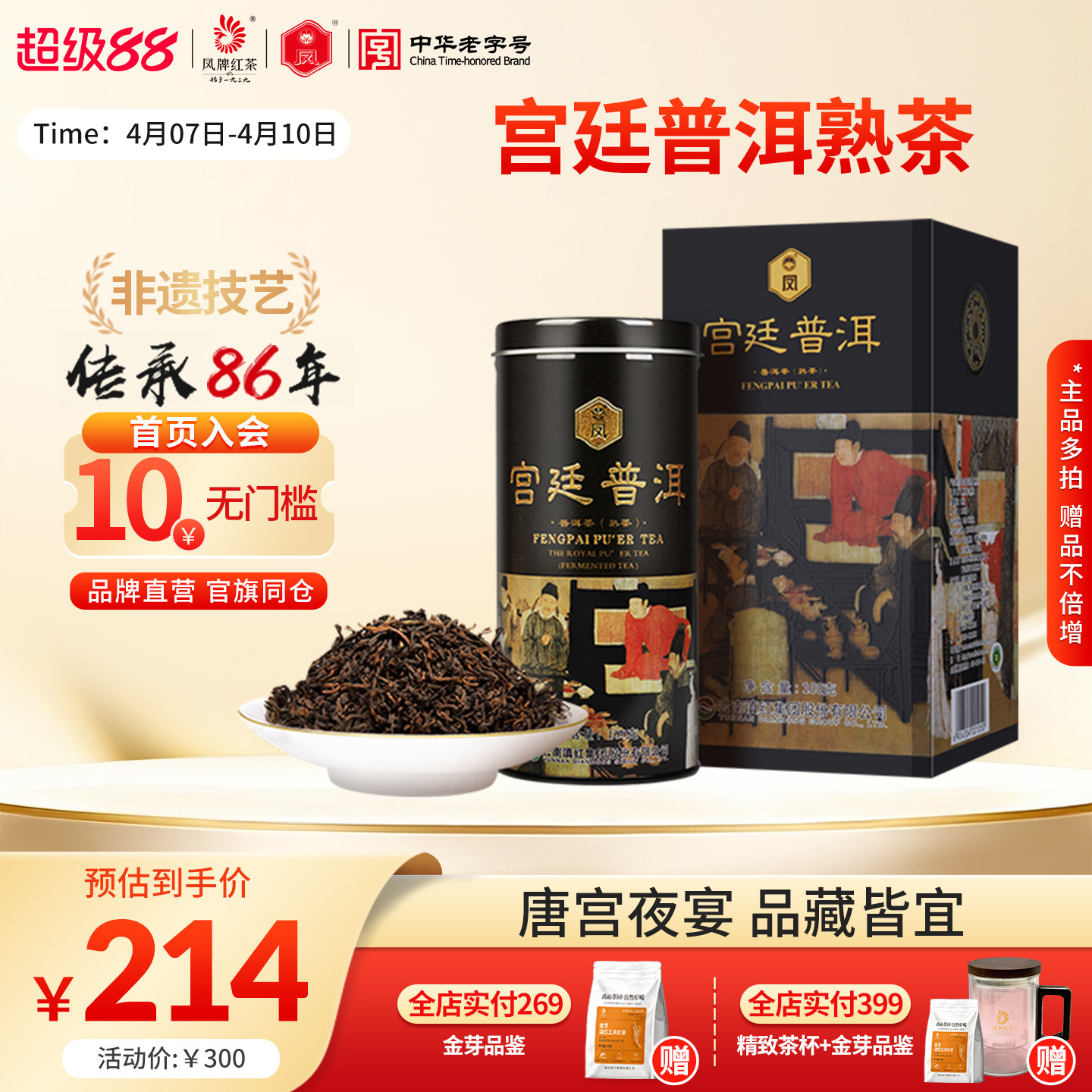 凤牌红茶云南普洱茶熟茶云南凤庆茶叶夜宴图系列宫廷普洱100g罐装