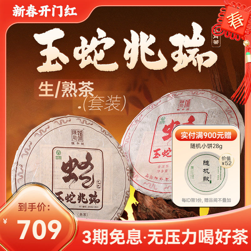 【蛇饼套装】陈升号生肖纪念饼普洱生茶熟茶茶饼普洱茶茶叶357g*2