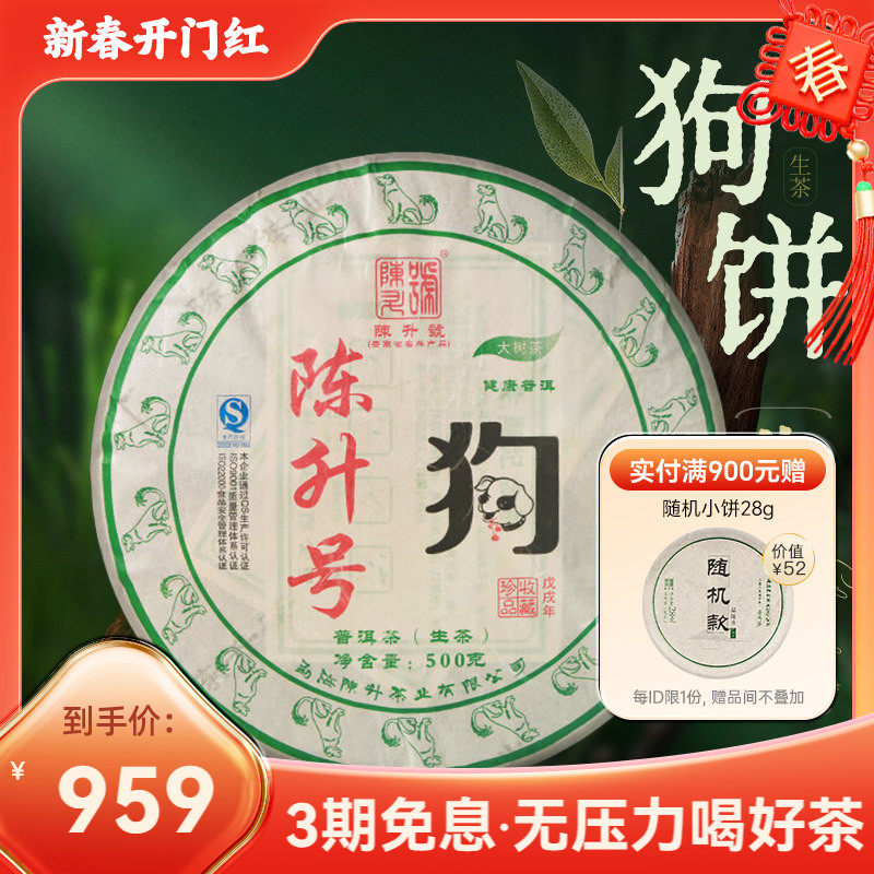 2018年陈升号普洱生茶生肖纪念饼狗饼生茶500g普洱茶生饼茶茶叶饼