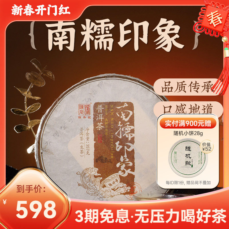 2022陈升号南糯印象大树普洱茶生357g云南勐海普洱生茶饼茶叶饼茶