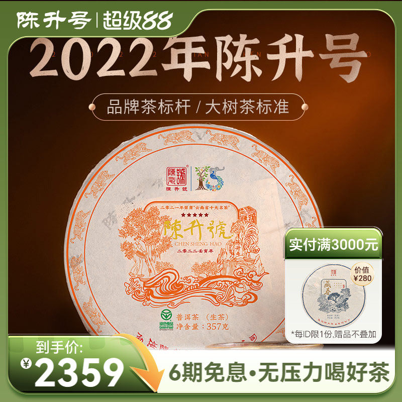 2022年陈升号品牌标杆普洱茶357g云南生普茶普洱生茶饼茶茶叶茶饼