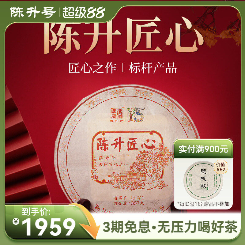 2022陈升号普洱茶陈升匠心普洱生茶饼357g云南勐海布朗山饼茶茶叶