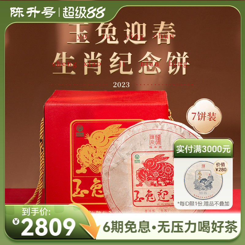 【整提7饼】2023陈升号兔饼生肖茶普洱茶生茶云南勐海生茶饼茶叶