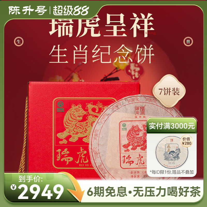 【整提7饼】2022年陈升号虎饼生肖普洱茶生茶云南勐海生茶饼茶叶