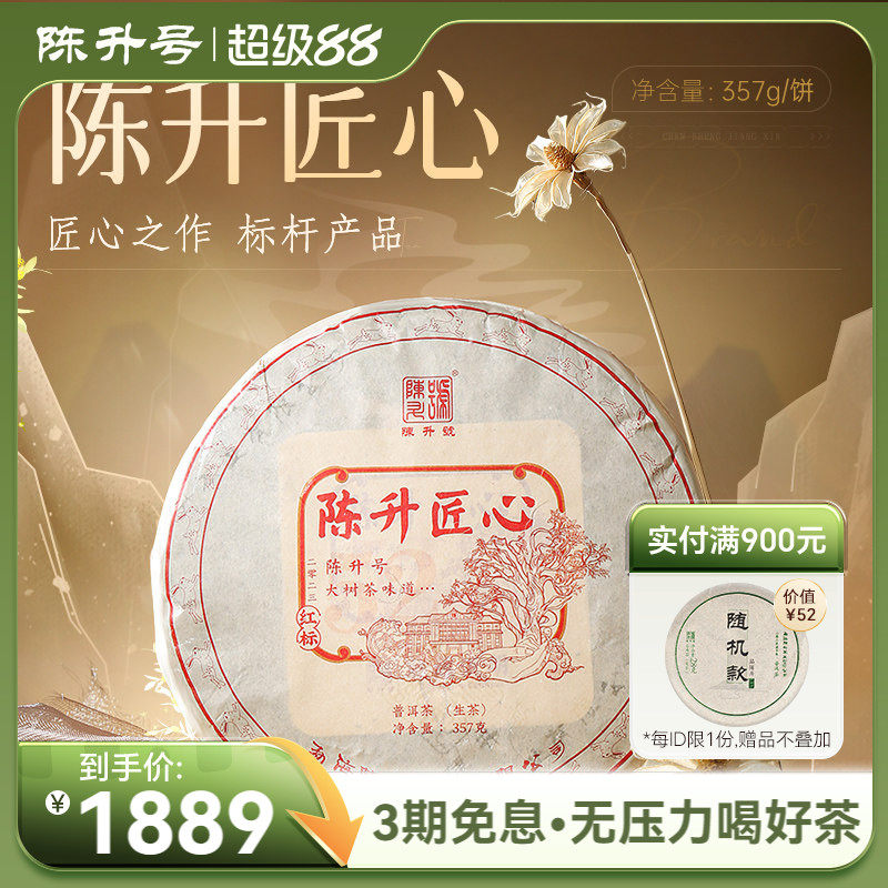 2023陈升号普洱茶陈升匠心普洱生茶饼357g云南勐海布朗山饼茶茶叶
