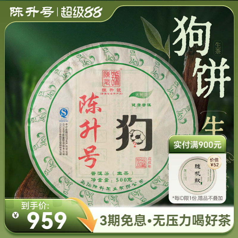 2018年陈升号普洱生茶生肖纪念饼狗饼生茶500g普洱茶生饼茶茶叶饼