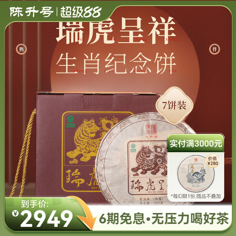 【整提7饼】2022年陈升号虎饼生肖普洱茶熟茶云南勐海熟茶饼茶叶