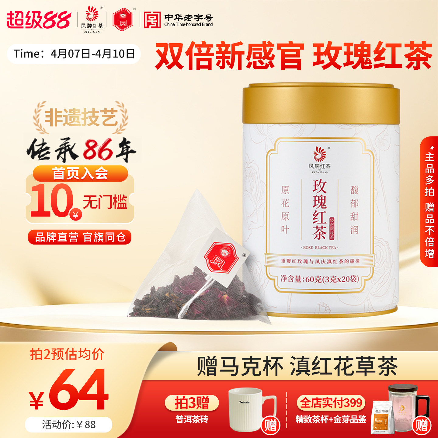【新品】凤牌重瓣玫瑰红茶花草茶袋泡浓香调味茶云南滇红茶叶茶包