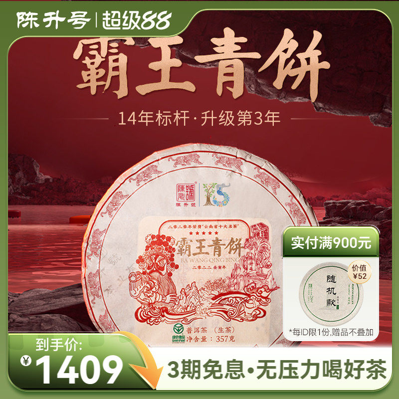 2022陈升号霸王青饼357g普洱茶生茶饼云南勐海普洱茶饼生茶叶饼茶