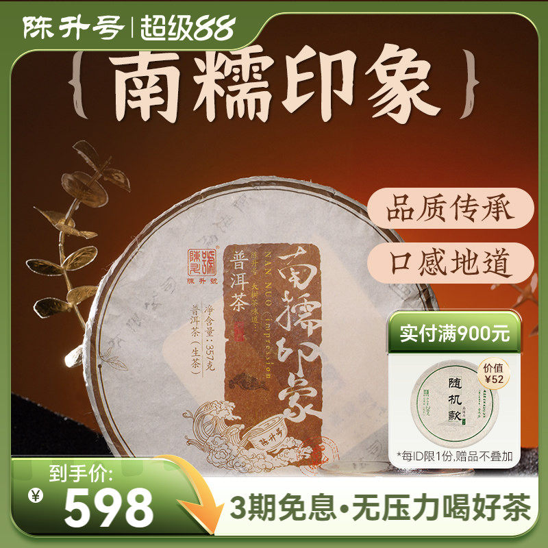 2022陈升号南糯印象大树普洱茶生357g云南勐海普洱生茶饼茶叶饼茶