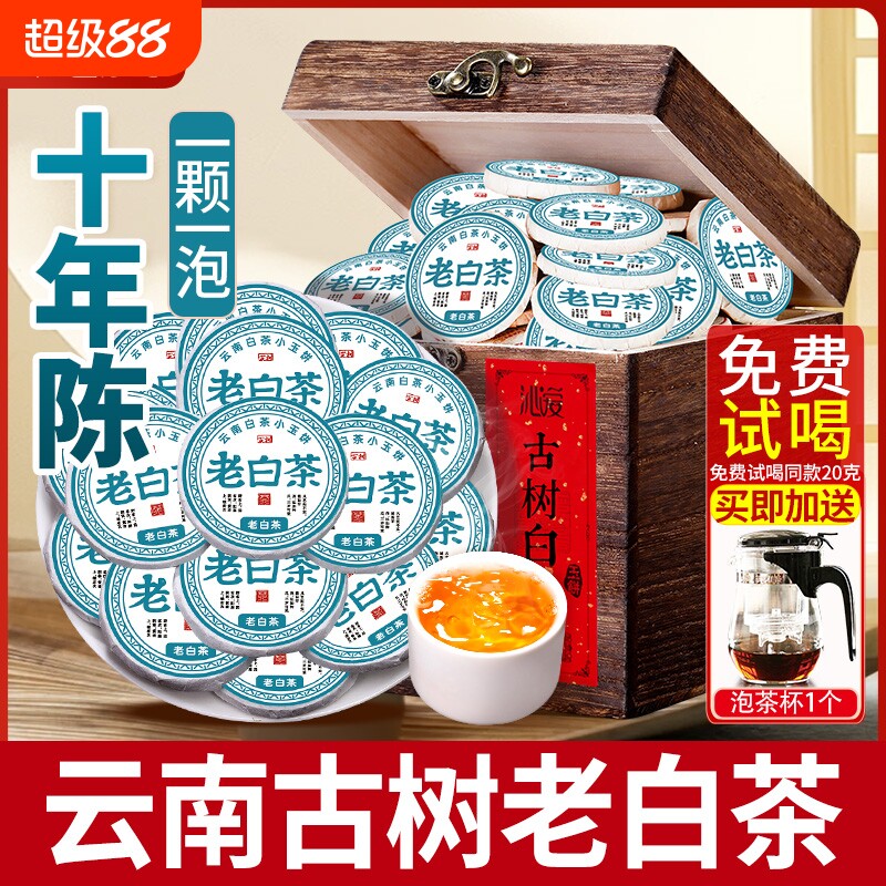 云南白茶十年以上老白茶古树茶高山头春小茶饼月光美人饼茶叶送礼