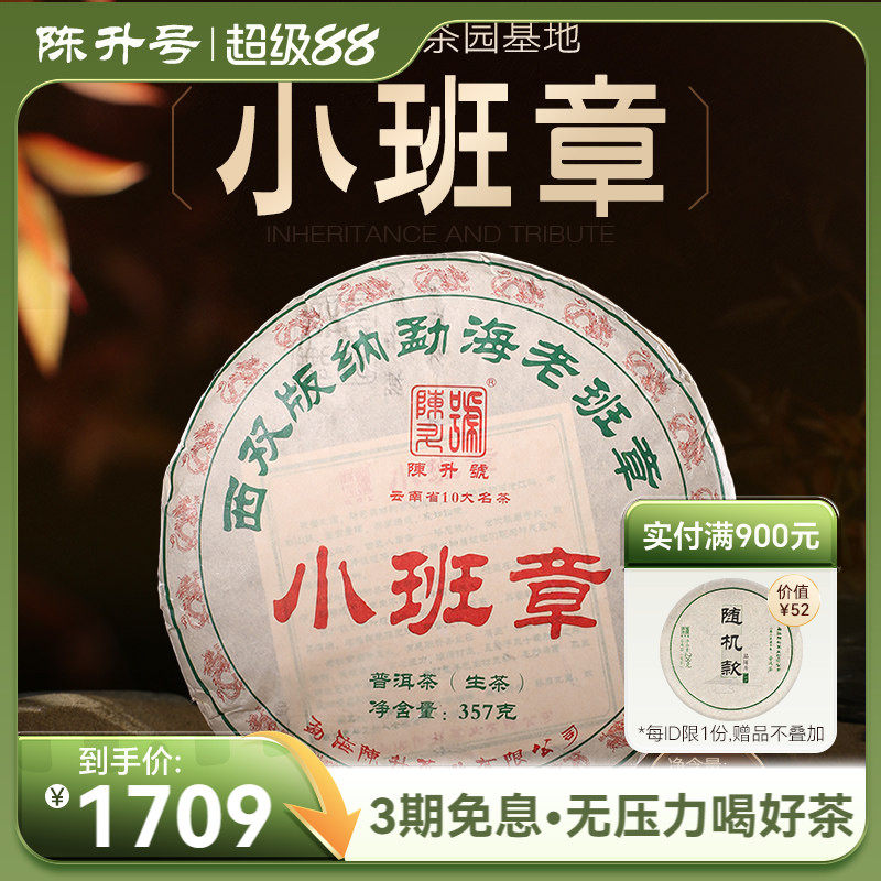 2024年陈升号老班章茶园小班章普洱茶357g勐海普洱生茶饼茶茶叶