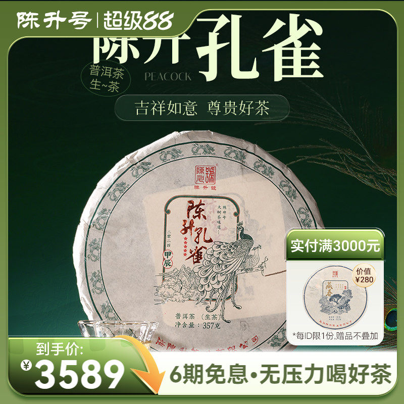 2024陈升号普洱茶生茶陈升孔雀357g普洱生茶饼茶叶云南勐海茶叶饼
