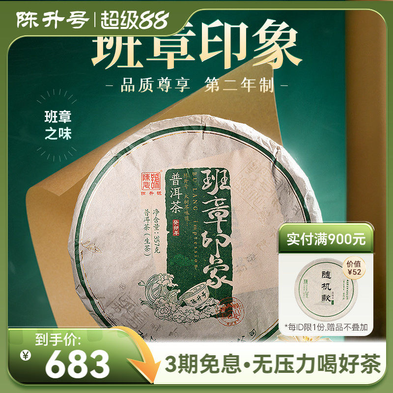 2023年陈升号班章印象普洱茶生茶357g普洱生茶饼茶叶勐海七子饼茶