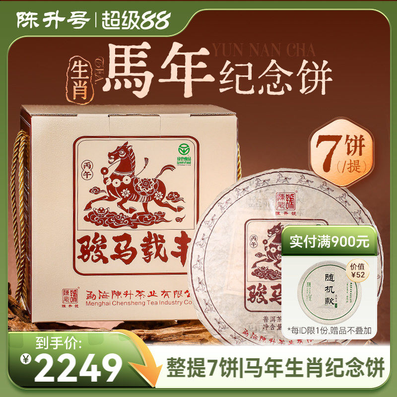 【整提7饼】陈升号马饼生肖纪念茶普洱茶熟茶云南勐海熟茶饼茶叶