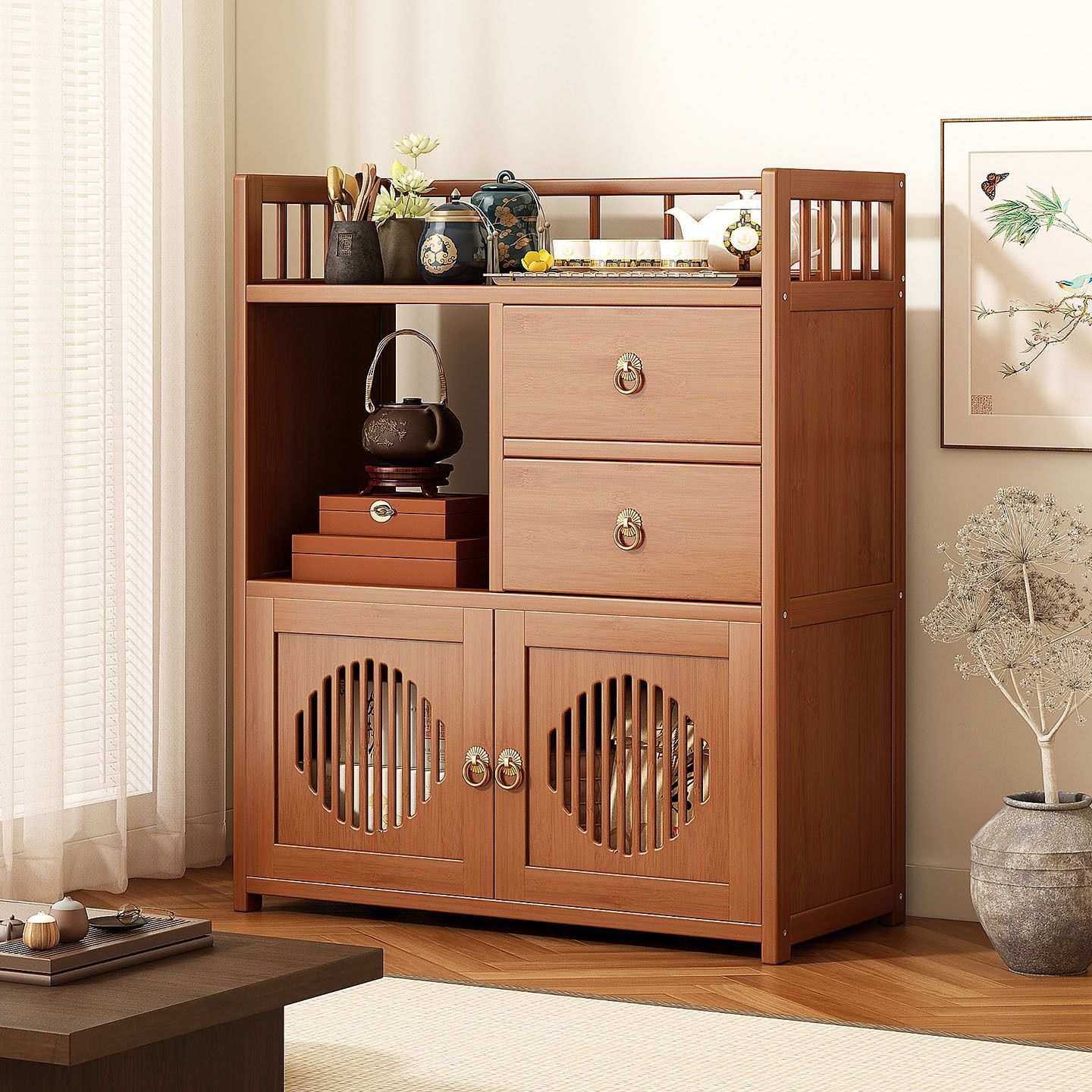 餐边柜办公室茶叶茶具茶水柜收纳架家用客厅置物架新中式茶桌边柜