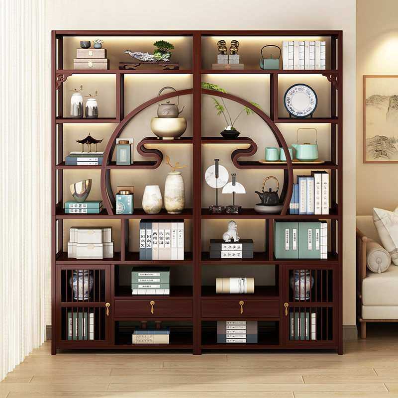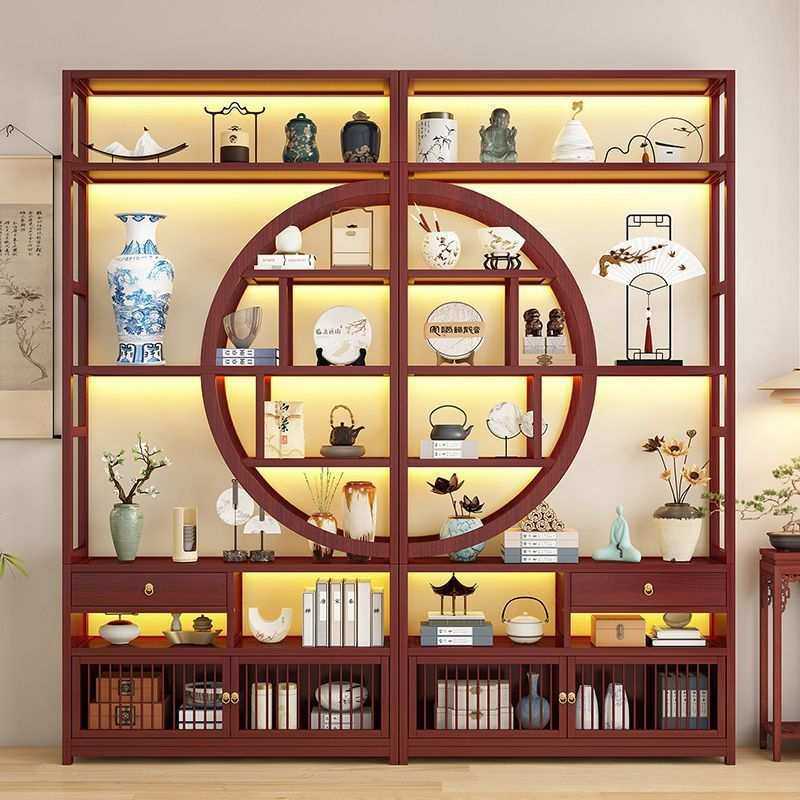新中式博古架茶室置物架茶叶展示柜隔断多宝阁客厅摆件架子客厅架