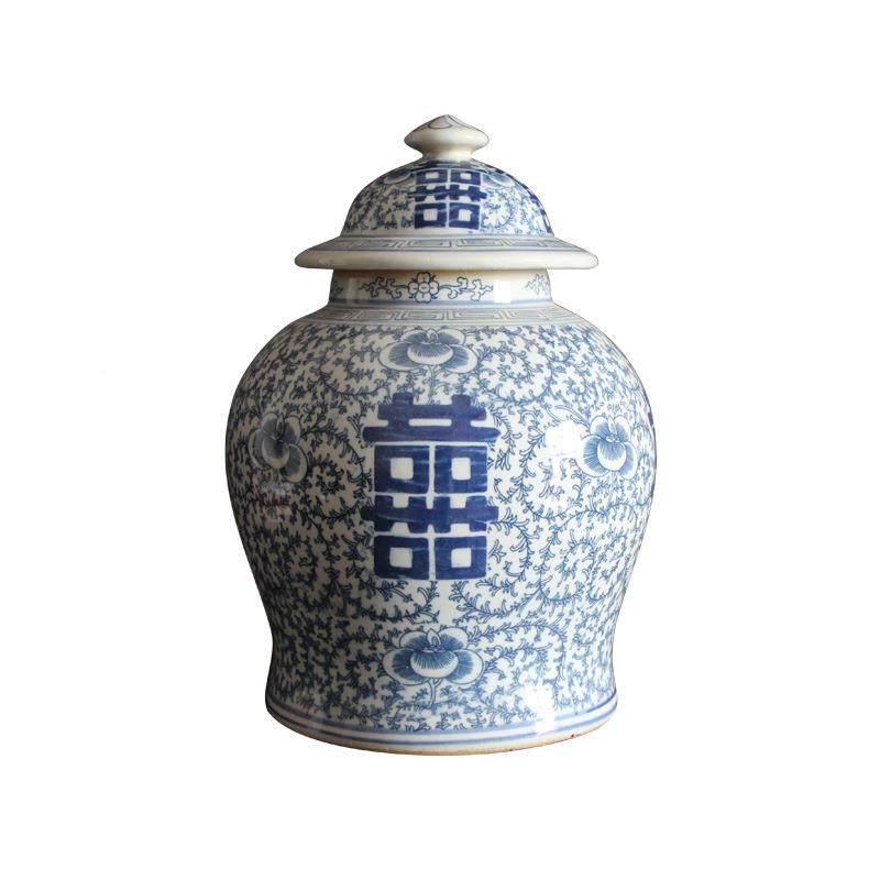 瓷器花瓶手绘字中式家居VCY陶大喜号花瓷瓶茶室青茶叶罐装摆件