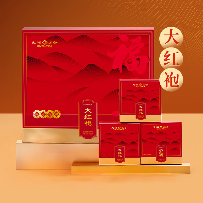 天福茗茶乌龙茶 福运绵绵武夷山大红袍岩茶一级255g礼盒装茶叶送礼