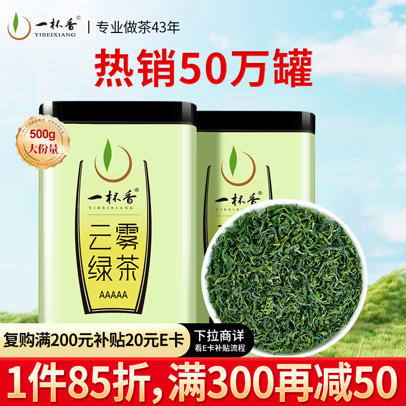 一杯香茶叶绿茶明前高山云雾500g2025新茶日照足过年货礼盒装自己喝自饮