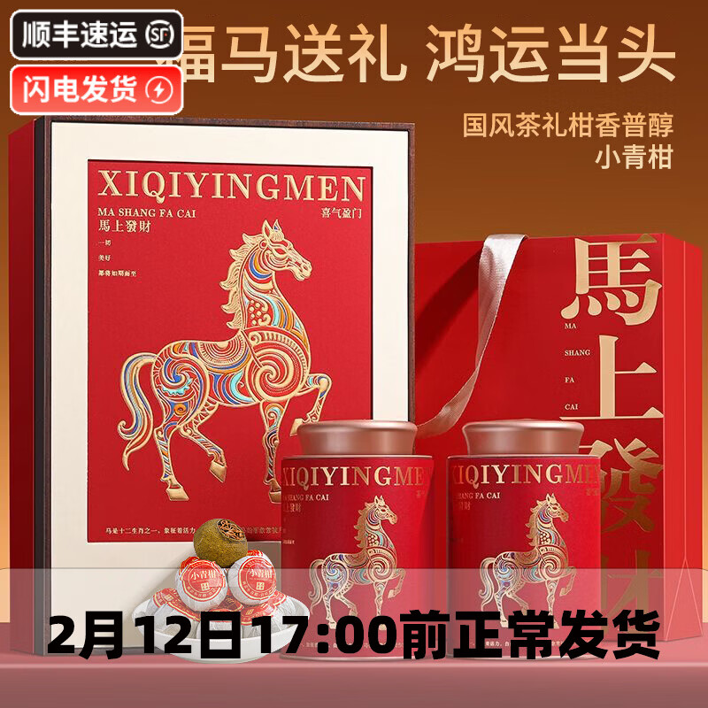 立香园年货送礼茶叶 小青柑普洱熟茶 老陈皮云南宫廷熟普小青桔柑普茶 马年爆款礼盒150克*2罐