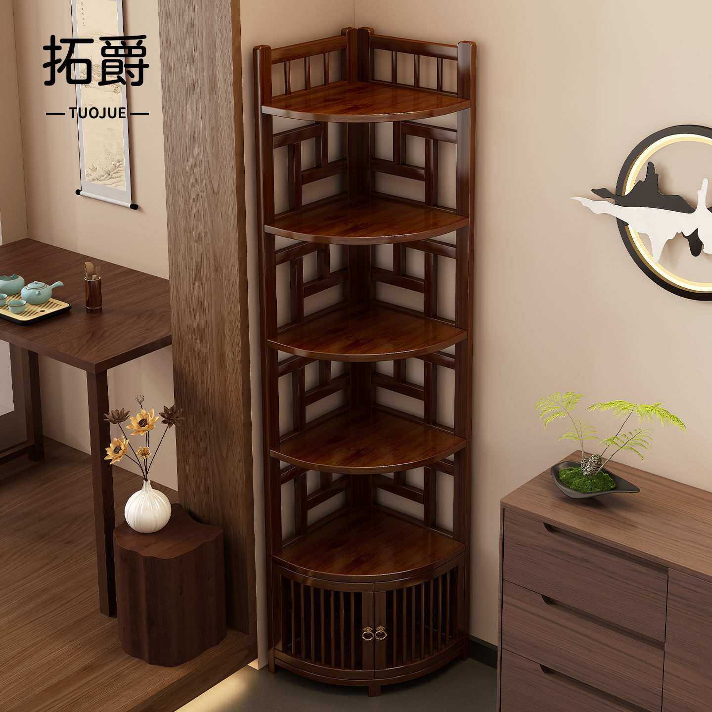 博古架新中式转角置物架茶室非实木茶叶放置架墙角多功能收纳柜子
