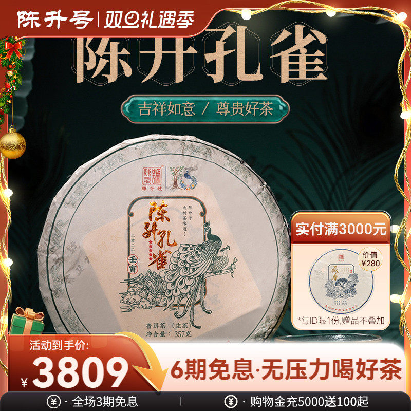 2022陈升号普洱茶生茶陈升孔雀357g普洱生茶饼茶叶云南勐海茶叶饼