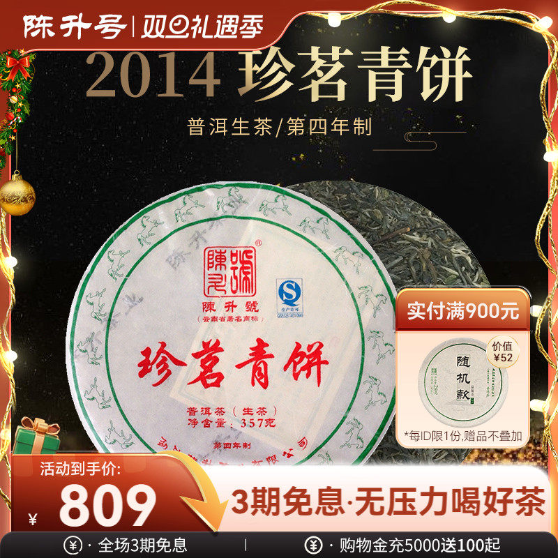 【口碑老茶】2014年陈升号普洱茶珍茗青饼357g普洱生茶饼茶叶饼茶