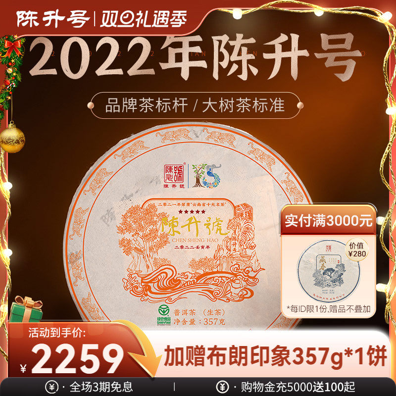 2022年陈升号品牌标杆普洱茶357g云南生普茶普洱生茶饼茶茶叶茶饼