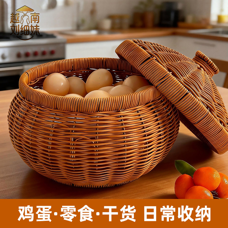编织鸡蛋罐南瓜篮家用零食馒头茶叶杂物收纳筐带盖创意储物水果篮