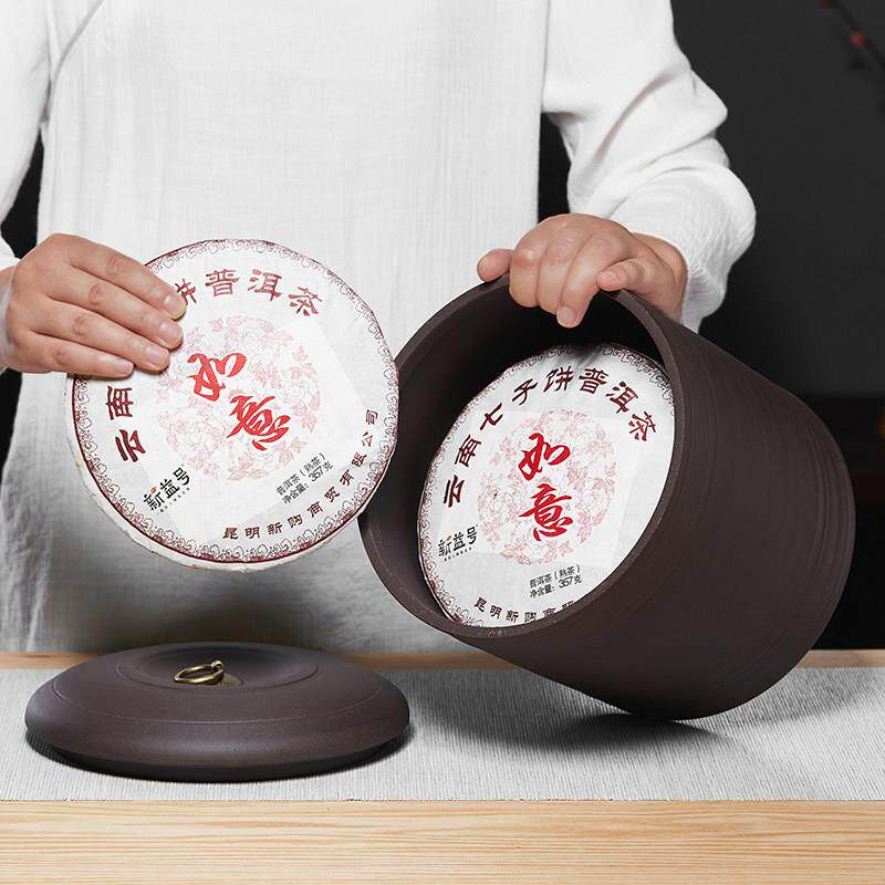 紫砂茶叶罐陶瓷大号茶罐密封防潮白茶醒茶普洱茶收纳盒茶饼储存罐