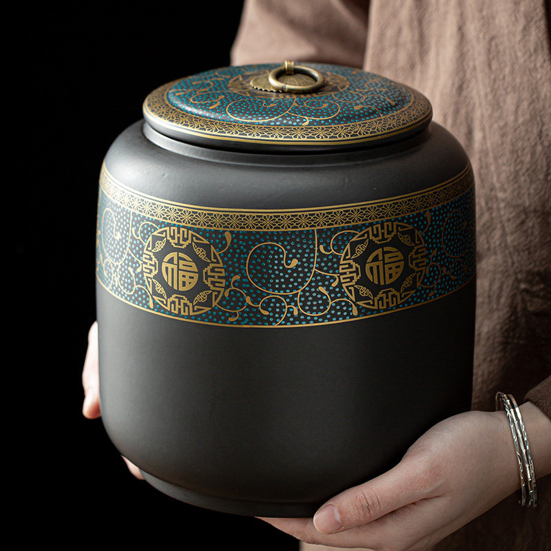 茶叶罐子陶瓷大号家用2斤装密封罐存储罐普洱罐防潮空布包礼盒装