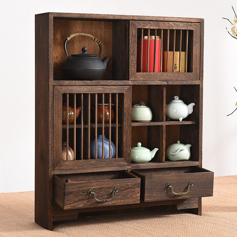 茶叶柜置物架实木茶柜展示柜紫砂壶博古架摆架茶架茶棚茶壶桐木