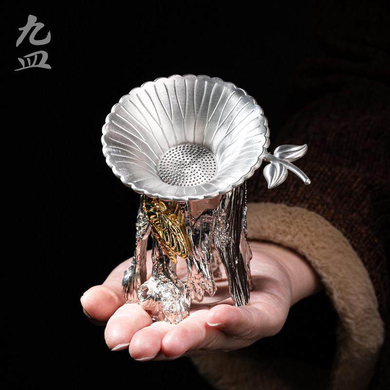 九皿纯锡茶漏创意茶滤功夫茶具茶叶漏斗过滤网茶隔滤茶器茶道配件