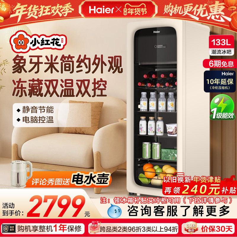海尔小红花套系133升元气冰吧小型冷藏保鲜家用茶叶饮料柜冰箱