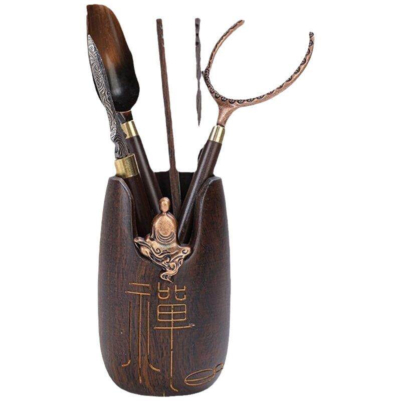 茶道六君子组合整套装功夫茶具零配件茶叶茶夹子镊子实木质