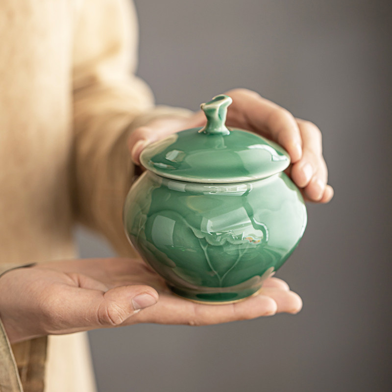 青瓷储茶罐复古茶罐高档茶叶罐创意陶瓷密封罐茶具小号收纳罐茶仓