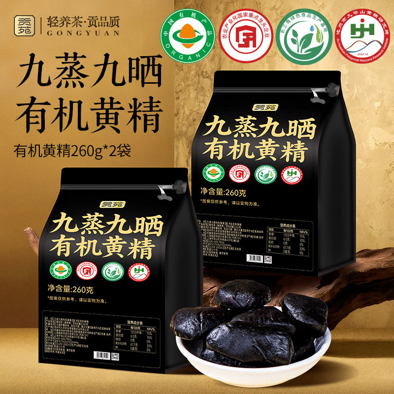 【有机认证】贡苑有机黄精九蒸九制官方旗舰店即食九华山野生中药