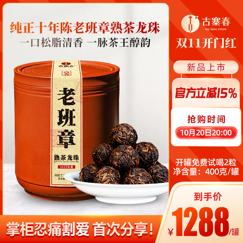 新品上新【老班章熟茶龙珠】2015年勐海高端熟茶建水紫陶400g罐装