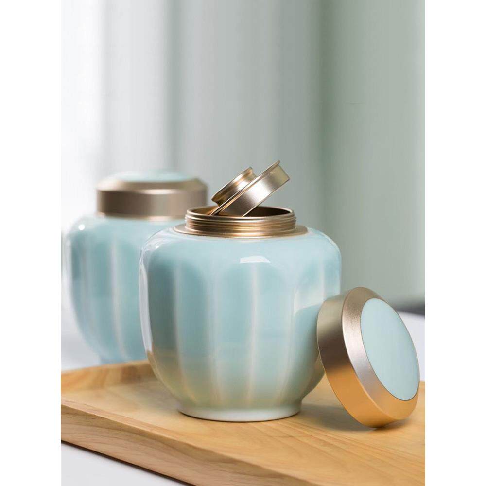 青瓷茶罐陶瓷密封罐茶叶储存罐普洱茶盒茶桶茶具大小家用茶叶仓库