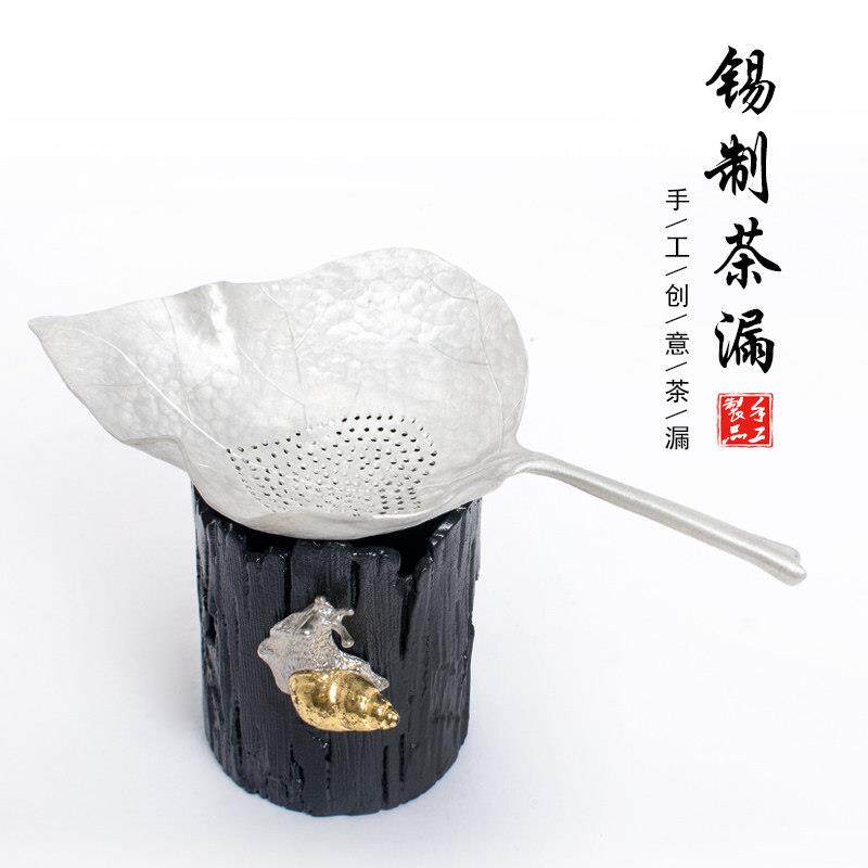 手工锡制茶滤茶叶过滤器茶隔创意树叶茶漏功夫茶具配件滤网公杯