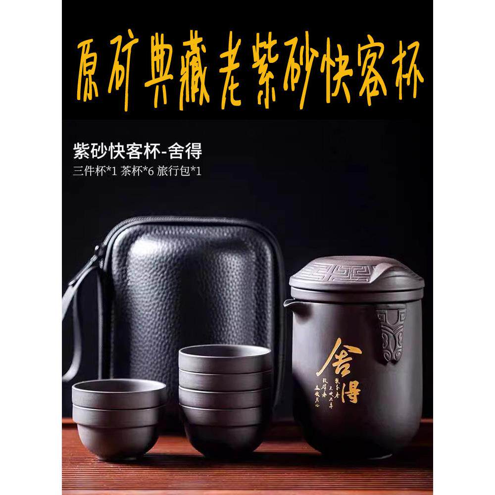 轻奢便携式紫砂旅行功夫茶套装快速茶杯茶叶水分离户外茶盘定制成