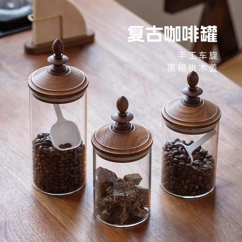 式覆古咖啡BL70Z12 豆储存罐实木盖玻璃日密封储物罐茶咖粉茶叶啡