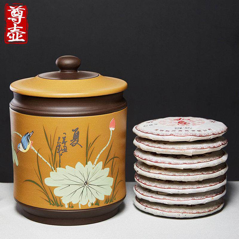 宜兴紫砂茶叶罐大号七子饼普洱密封存储罐醒茶罐家用茶饼茶桶茶仓
