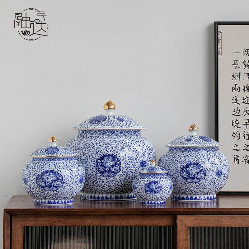 青花茶叶罐储存罐陶瓷罐储存茶密封罐普洱中大号家用普洱白茶饼