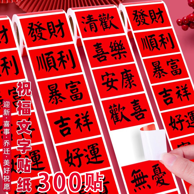 新年快乐祝福语国风红色标签贴纸平安吉祥好运喜乐如意茶叶不干胶标签贴封口贴