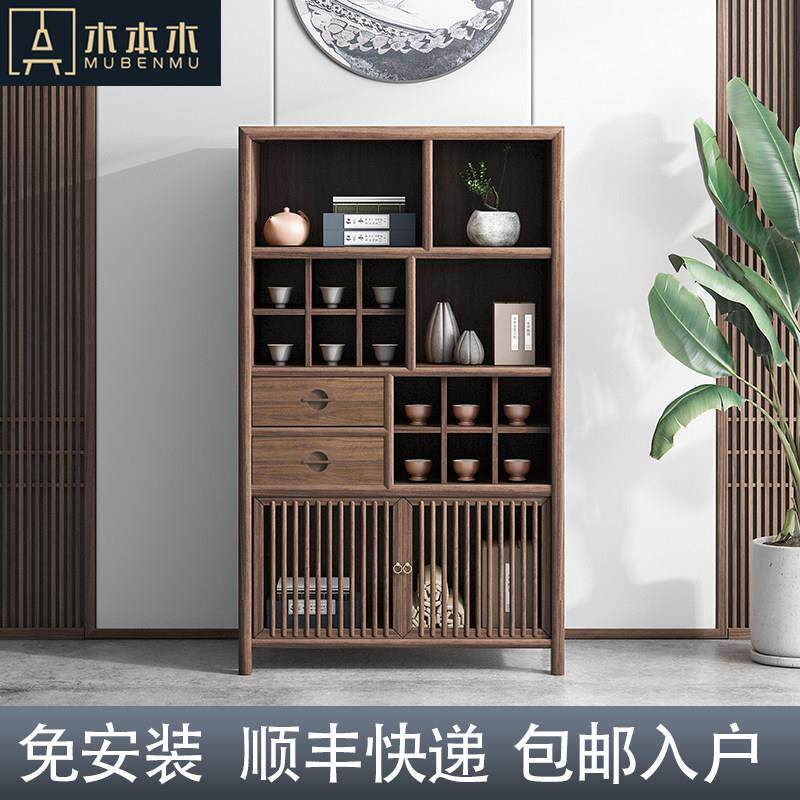 需定制新中式餐边柜实木立柜靠墙高柜茶叶柜茶具柜子禅意茶室家具
